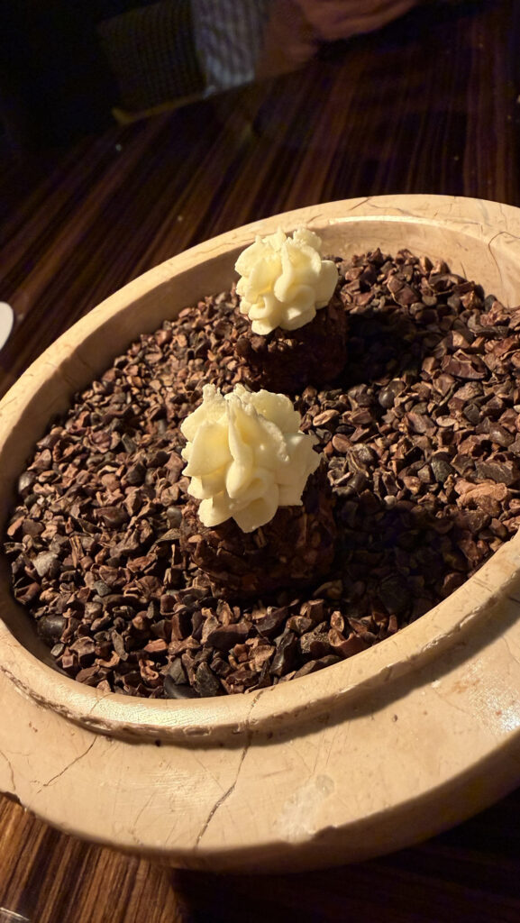 It was a 10 course meal, and I think I only liked two or three bites of it. The steak looked good, but it was smoked for some reason (and I just hate smoked meats). One of the dishes also had “ant eggs”? We all thought we heard the waiter wrong lol but yah … Overall it was okay at best. I’m just not really into this kind of dinning. Give me a nice grilled steak or seafood with some simple veggies any day. I’m a simpleton when it comes to food.